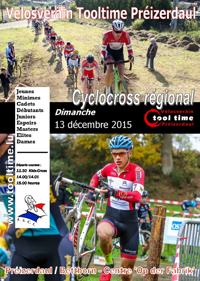 Den Tooltime Préizerdaul firt matt engem Bus vum Voyages UNSEN (48 Plaazen) den Sonndeg 31. Januar 2016 op De Départ ass am Préizerdaul bei der Fabrik um 07h00 an de Retour ass géint 19h00 geplangt De Préis pro Persoun ass 20€ (an dem Préis ass awer d’Entrée net dran) Melt Ierch w.e.g op schrtool@pt.lu fir Bescheed ze soen. Weider Info’en op dem offizelle Site : www.wk2016.beWeltmeeschterschaft vum Cyclo-Cross zu Zolder (B)