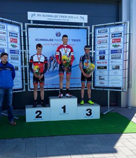 Cadets: Vun Start un ass hei direkt Attackéiert ginn. Am Ufank ass den Impuls vun den Auslänneschen Coureuren komm. Dëst wor awer net vun laanger Dauer. Ab der Mett vun der Course hunn dunn 3 Coureuren probéiert den Führungsgrupp méi kléng ze kréien, hei wor dann och den Loic dobäi. Dëst sollt hinnen dann och geléngen, an esou sinn si dann och an den leschten Tour gefuer. Aus der leschter Kéier eraus hunn dunn e puer Kären gefehlt, awer den Loic huet sech op der super 3 Platz klasséiert. (Bravo) Den Mats, Philippe, Mik an dem Tom woren och mat um Start. Allen 4 hunn sech super geschloen, fir 3 vun hinnen wor et déi éischt Course bei den Cadets. Kompliment un jidereen den den Samsteg um Start wor! Super Leschtung!!!