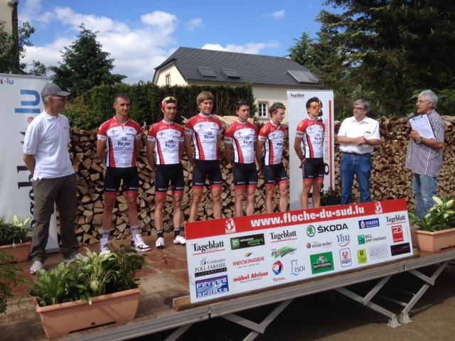 Au nom du comité VV Tooltime Preizerdaul, je remercie les personnes, qui ont participé avec leur aide au succès de notre équipe elites/espoirs lors de la Flèche du Sud 2014. Je pense surtout à l’aide infatigable, du matin au soir que la famille Turchi, Toni, Claudine et leur deux filles ainsi que la mère de Alec, fourni ces derniers jours. Sans leur aide il aurait été difficile d’aboutir à notre succès. La présence et l’aide spontanée de Tom, l’aide de Marco ainsi que de Guy, Marc, Albert, René nous a été précieuse.