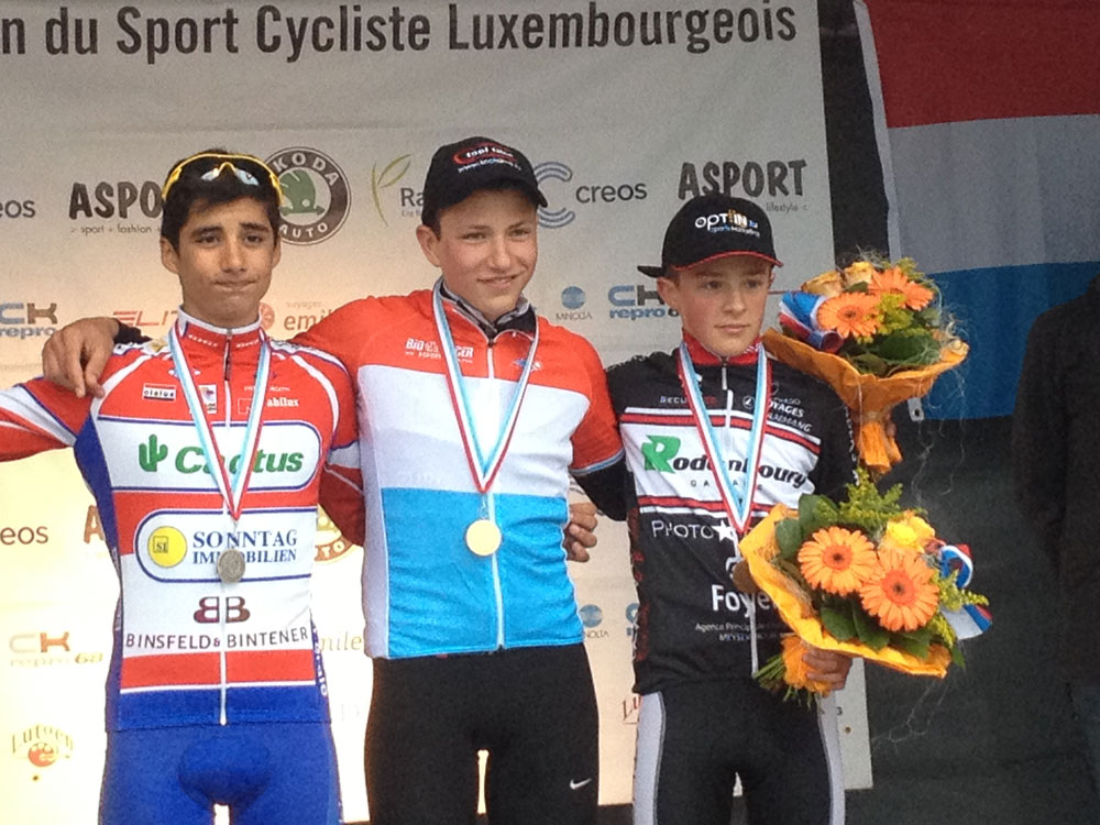 De Felix Schreiber huet sëch op dem Championnats 2013 zu Dippech an der Course bei de Cadets durchgesaat. An enger spannender Course huet hien alles ginn, an op Zentimeter virum Tristan Parrotta (UC Dippach) gewonnen. Hien huet alles richteg gemach, op de richtege Moment gewaart an dunn zougeschloen 🙂 ; Felicitatioun Felix ! Hien konnt sech mam Tristan um leschten Tour fortgemaachen a konnten ca. 20 Sekonnen op de Ken Conter an ca. 1 Minute op en eischte Peloton eraus fueren, wou de Philippe Schreiber och eng gutt Course gefuer ass (Plaatz 13). Mara Turchi ass daat 4. Meedchen bei de Cadets ginn.